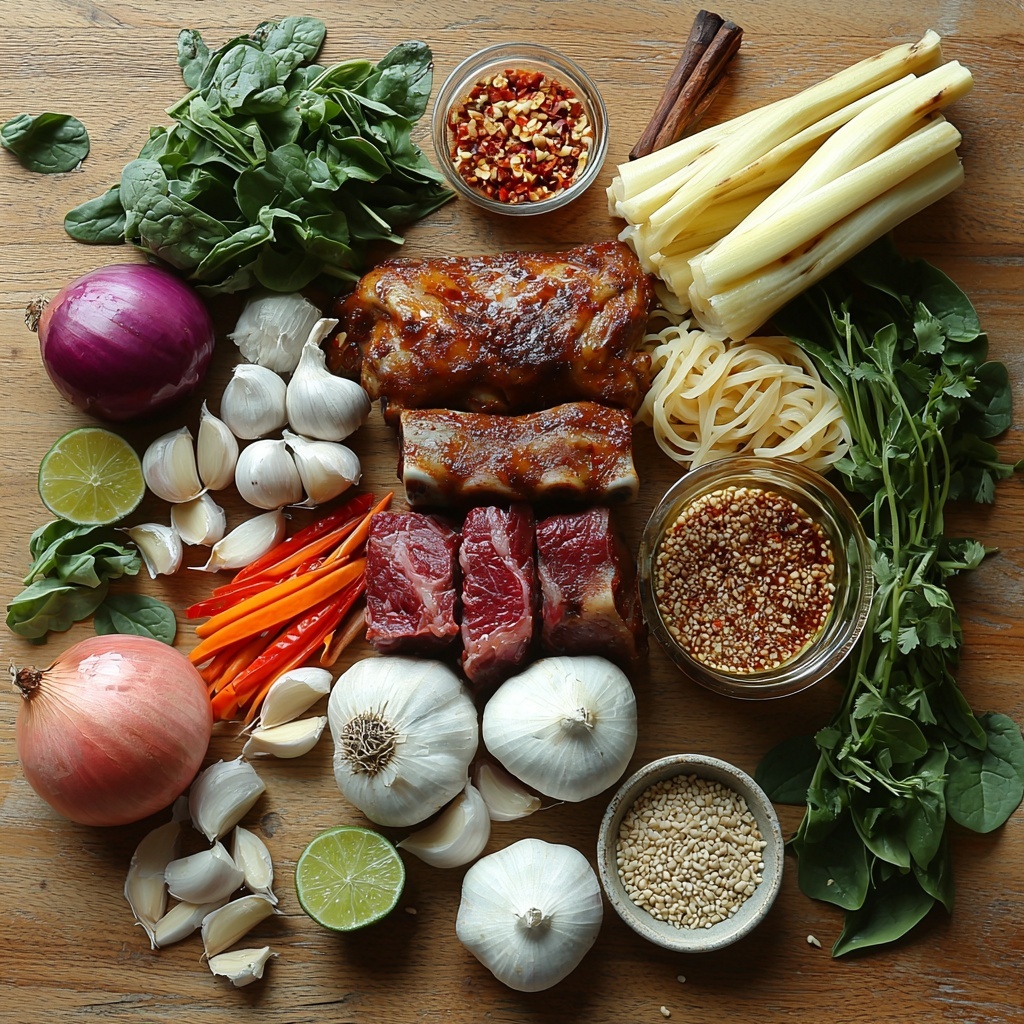 These ingredients may look straightforward, but each one plays a crucial role in building the rich tapestry of flavor and texture that defines this soup. From the meaty pork bones to the aromatic lemongrass, every element is essential for an authentic experience.