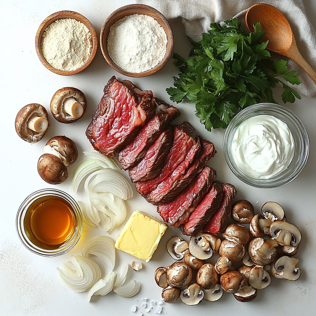 Start by slicing your beef into thin strips against the grain—this is key to ensuring tender bites later on. Clean and slice your mushrooms, mince the garlic cloves, and finely chop the onion. Getting all your ingredients ready upfront makes the cooking process smooth and stress-free.