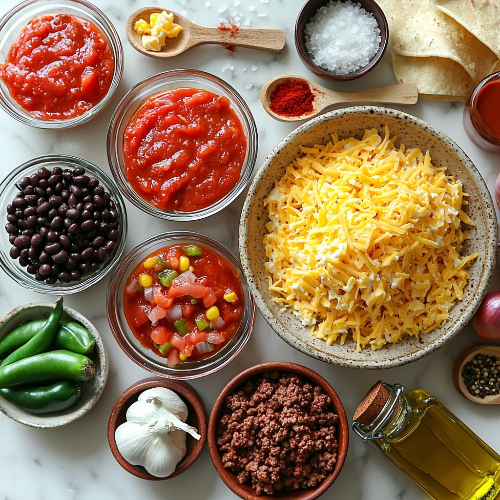 Gathering simple, accessible ingredients is the first step to nailing this Beef Enchilada Casserole Recipe. Each component plays a vital role, from the aromatic spices that build the flavor base to the creamy cheese that holds it all together. Let’s break down what you’ll need: