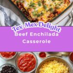 This Beef Enchilada Casserole is a flavorful and hearty dish that layers tender ground beef seasoned with cumin and chili powder, black beans, corn tortillas, and melted colby jack cheese. Perfect for a comforting weeknight dinner, this casserole combines Mexican spices and convenient ingredients for an easy baked meal that serves four.
