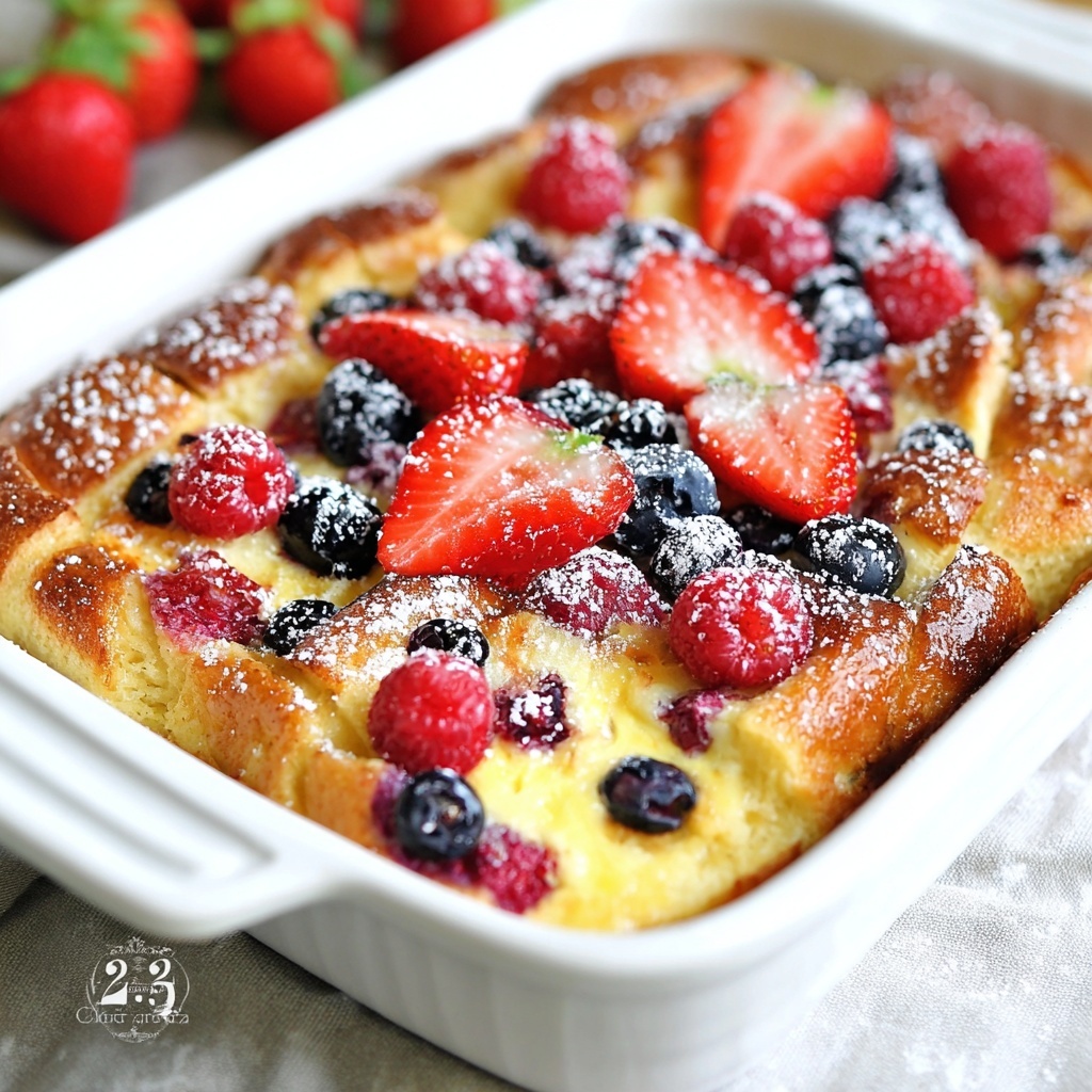This bake pairs wonderfully with simple sides like a bowl of vanilla yogurt or a fresh fruit salad to complement the berries inside. For a heartier brunch, serve alongside crispy bacon or a creamy scrambled egg dish to balance sweet and savory notes.