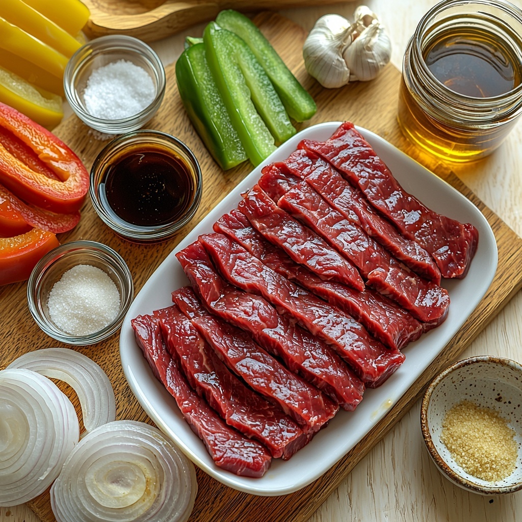 • 1.5 lbs flank steak, thinly sliced: The star of the dish, flank steak provides rich flavor and a tender bite when cooked properly.