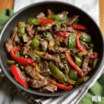 This Best Ever Pepper Steak recipe features tender flank steak marinated in a savory soy and oyster sauce blend, stir-fried with crisp bell peppers, onions, garlic, and fresh ginger. Ready in just 25 minutes, it’s a flavorful and quick stovetop dish perfect for weeknight dinners served over rice.