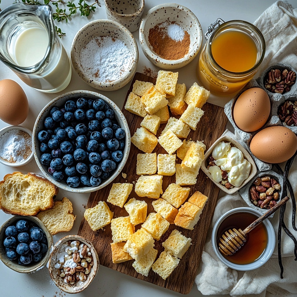 These ingredients are wonderfully simple yet essential, each one playing a unique role in crafting the perfect harmony of flavors and textures in this Blueberry Baked Oatmeal Recipe. From the soft cubed bread that forms the base to the juicy blueberries that bring vibrant color and freshness, every component is a little superstar in its own right.