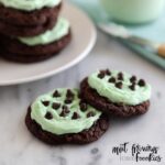 - Frost and Garnish: Once the brownie cookies have cooled, generously frost each cookie with the mint frosting. Optionally, sprinkle extra chocolate chips on top for added texture and decoration.