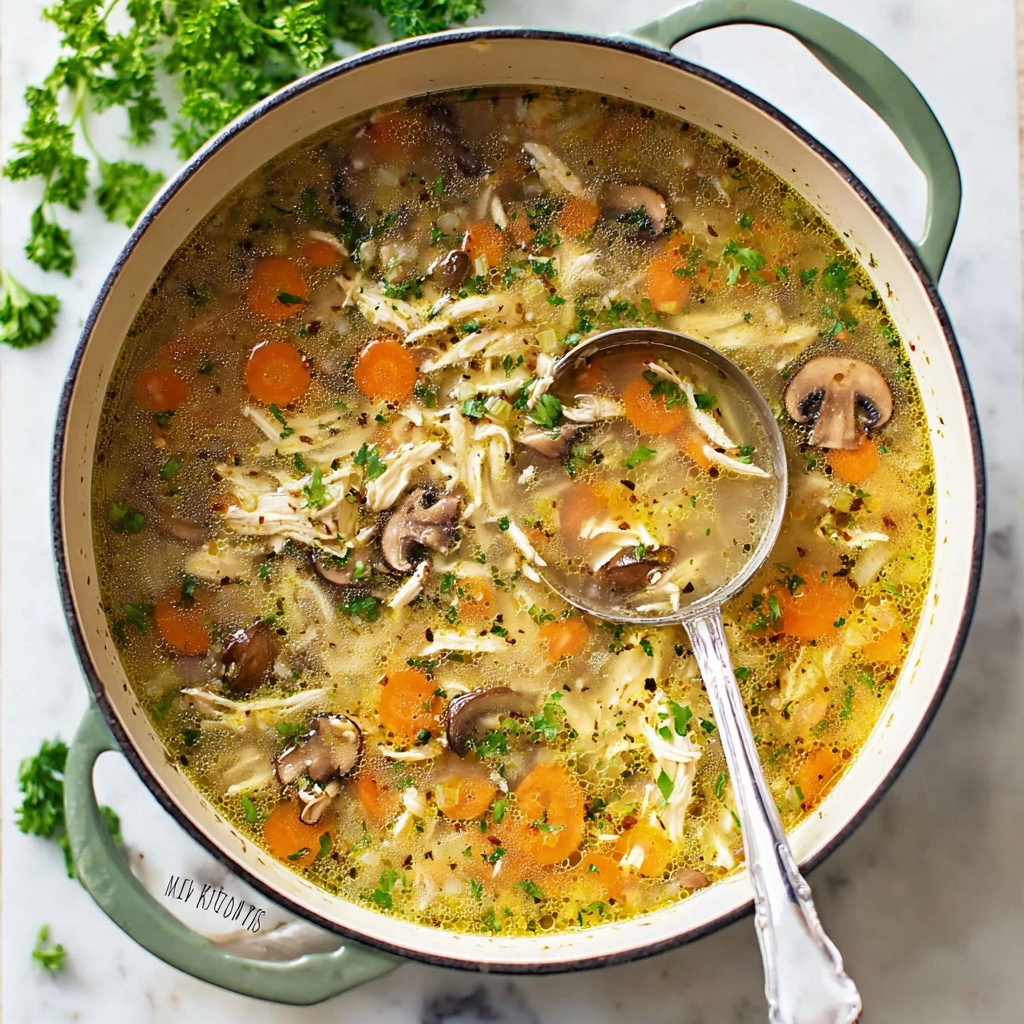 Freshness and visual appeal make any soup more inviting. For this Chicken and Mushroom Soup Recipe, try garnishing with chopped fresh parsley or thyme to add a vibrant pop of green and subtle herbal brightness. A sprinkle of extra parmesan or black pepper can also liven things up and customize each bowl to taste.