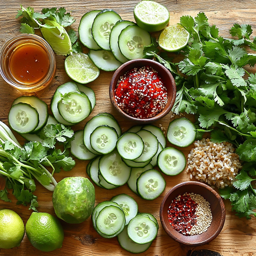 - 3 Persian or mini cucumbers, thinly sliced: Their crisp, cool texture provides a refreshing contrast to the spicy chicken.