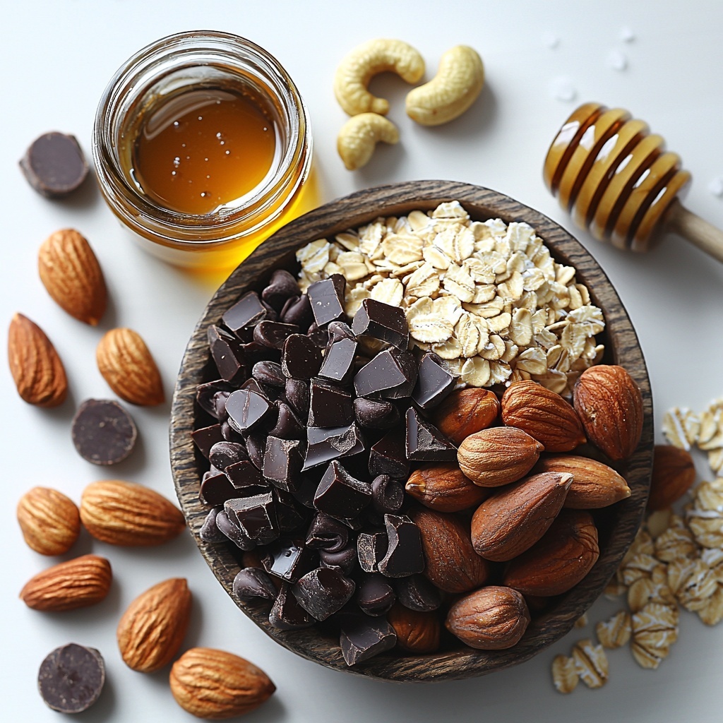 These ingredients are simple, wholesome, and each plays a crucial role in building the perfect bar. From the nutty crunch to the luxurious chocolate, every component adds something special to the final taste and texture.