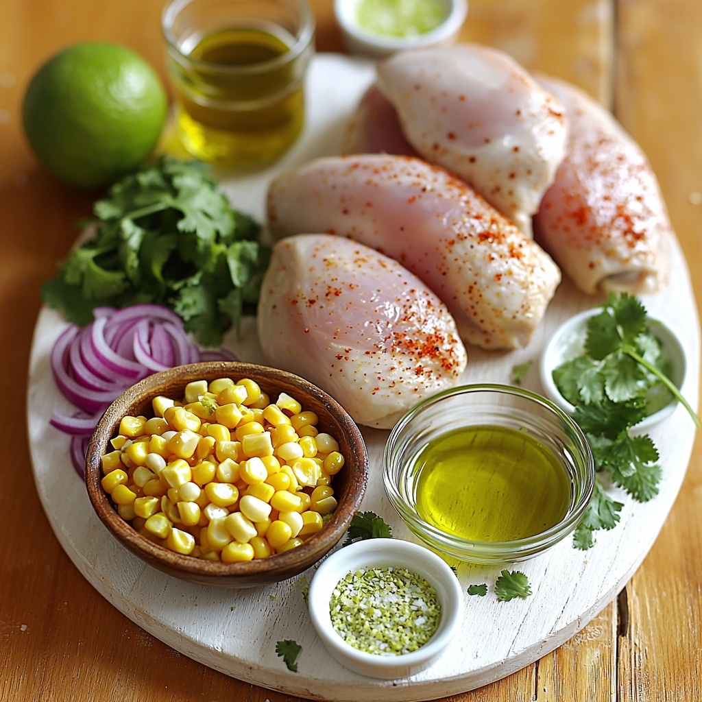 - Prepare Fresh Corn Salsa: In a bowl, combine fresh corn kernels, chopped cilantro, minced red onion, lime juice, lime zest, olive oil, cilantro lime seasoning, and kosher salt. Mix thoroughly to ensure all flavors meld together. Set aside while you prepare the chicken.
