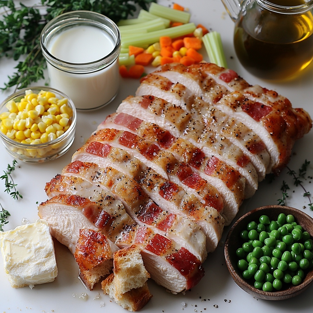 Gathering simple, everyday ingredients makes this Creamy Chicken Noodle Soup with Mini Croutons Recipe a breeze to whip up. Each component plays its part—from the savory bacon fat that adds depth to the base, to the fresh veggies that contribute freshness and color, all the way to the crunchy croutons that add texture and delight in every bite.