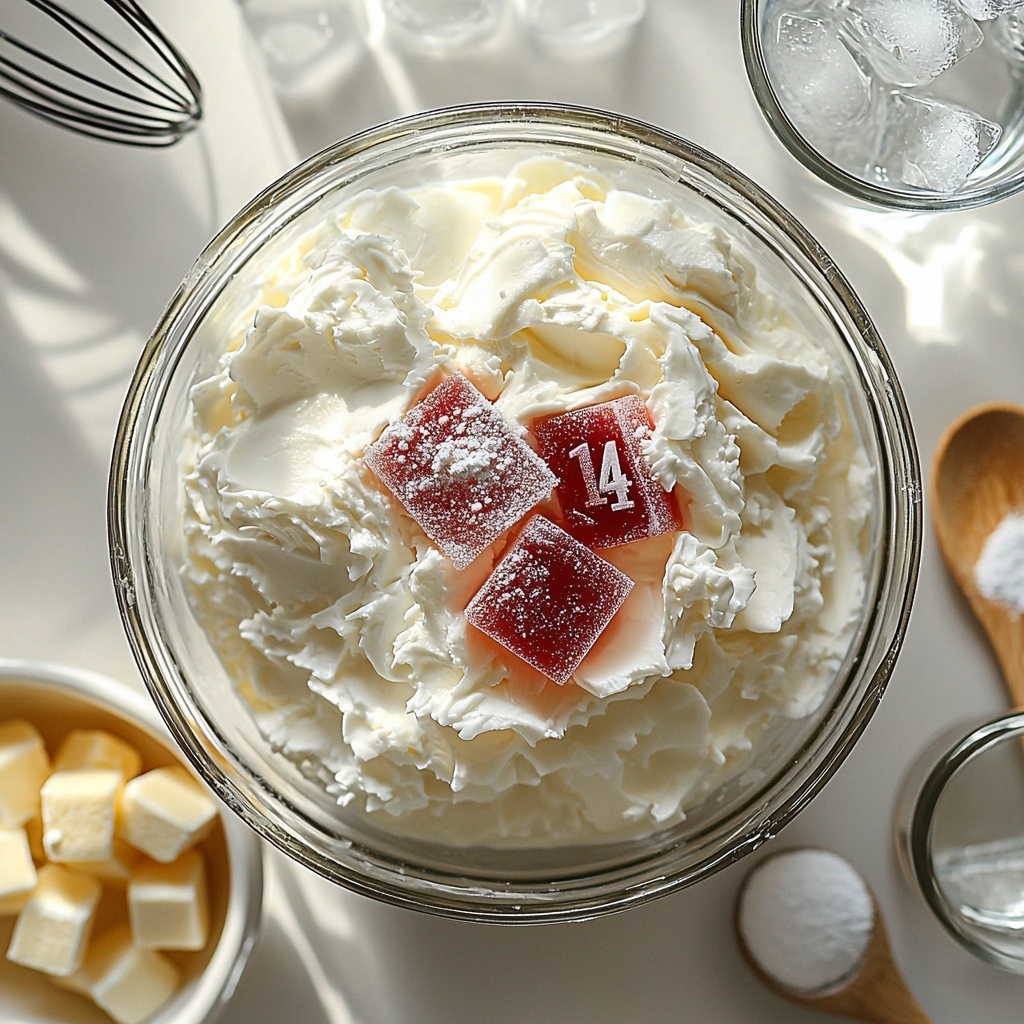 Take a large bowl and beat the heavy whipping cream together with the powdered sweetener using an electric mixer. Whip until you see stiff peaks form—the cream should hold its shape beautifully and make the dessert delightfully airy.