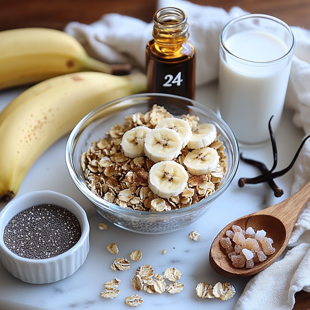 Start by grabbing a large bowl where you’ll mix together every ingredient except your favorite toppings. Toss in the rolled oats, chia seeds, brown sugar, mashed bananas, cinnamon, salt, vanilla extract, and milk. Stir with love until every oat is luxuriously coated. The banana’s creaminess mingles beautifully with the cinnamon and vanilla, inviting the oats to absorb all those flavors overnight.