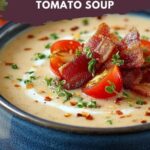 This Deliciously Creamy White Bean & Bacon Tomato Soup is a comforting, hearty dish perfect for any season. Combining crispy bacon, creamy white beans, and rich tomatoes, this soup is blended to smooth perfection and finished with fresh greens and cream for a velvety texture and robust flavor.