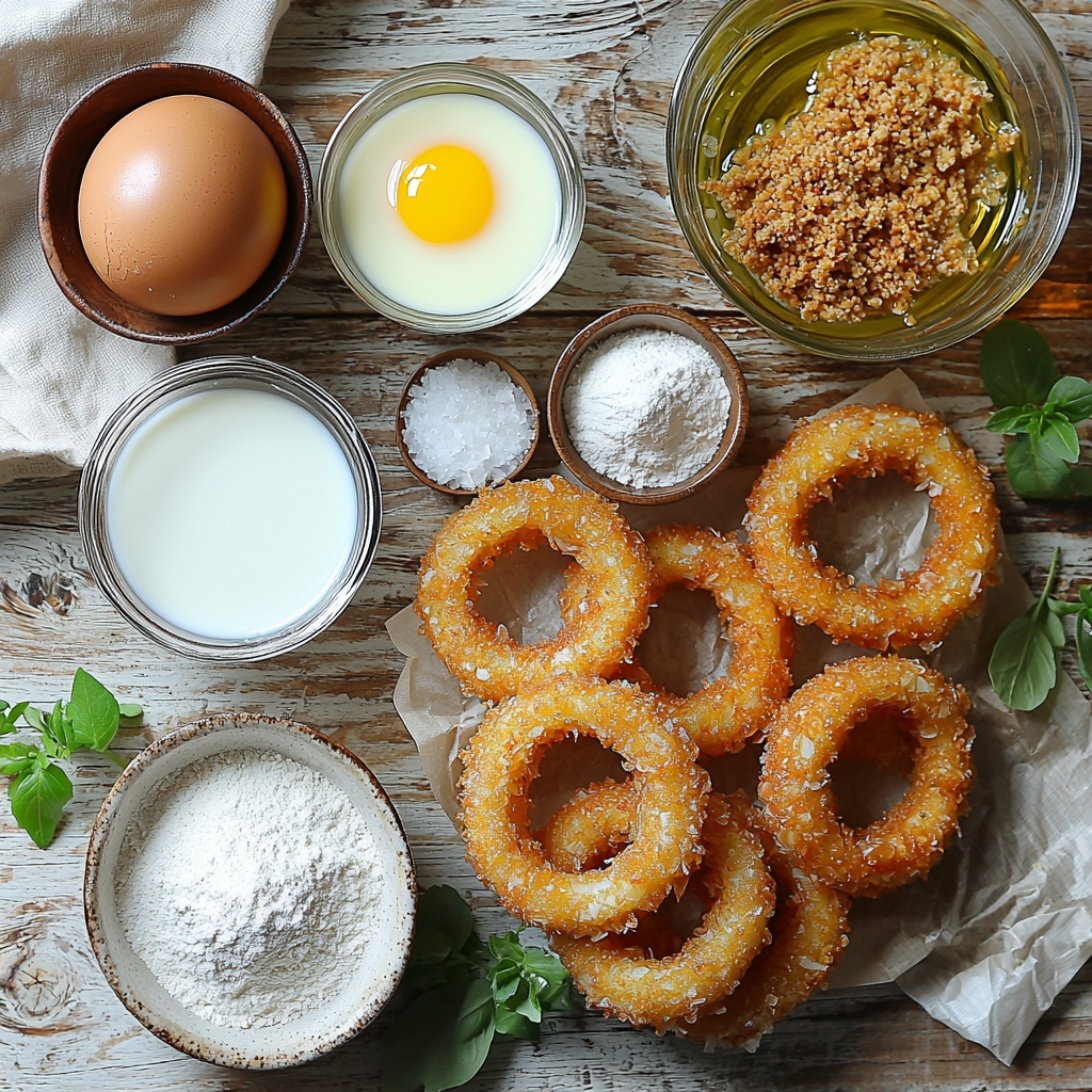 These ingredients are the heart and soul of your Crispy Fried Onion Rings Recipe. Each one plays a vital role in creating that perfect crispy coating and deliciously tender interior, turning humble onions into a golden masterpiece.