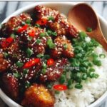 For a stunning presentation, try serving the Crispy Sesame Chicken Recipe over a bed of thin rice noodles tossed lightly in sesame oil and soy sauce. You can also pile the chicken on a platter and sprinkle with extra green onions, sesame seeds, and a drizzle of sriracha for an eye-catching, flavor-packed centerpiece perfect for sharing.