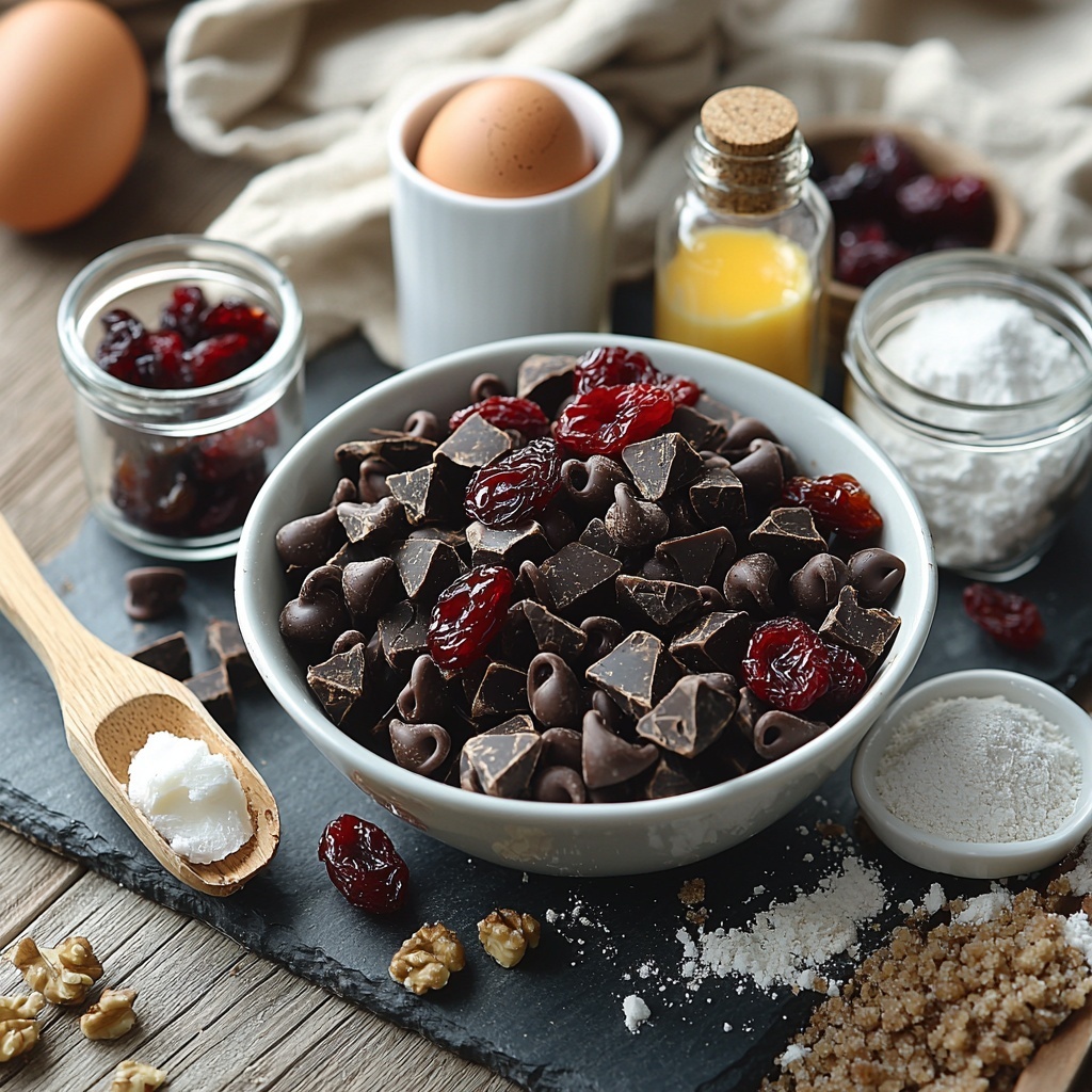 - Dark chocolate chips (1 cup): Choose 60-70% cocoa for a rich, bittersweet kick that complements the cherries perfectly.