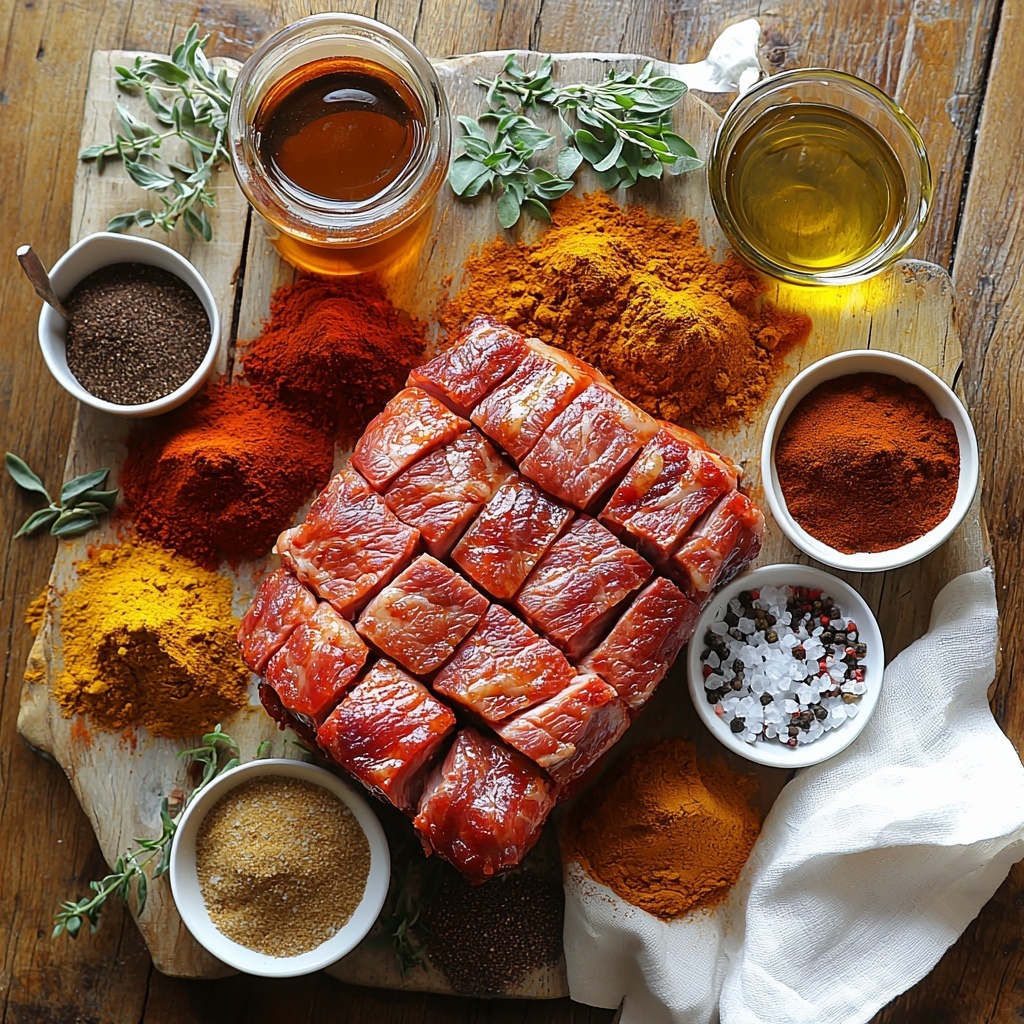 First, gather all your dry spices and combine them in a small bowl. This perfectly seasoned rub is the heart and soul of the pork’s flavor, delivering that mouthwatering, crave-worthy taste. Mixing these spices ahead lets the flavors blend and intensify.