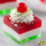Cut into festive squares and dress your Jello with optional toppings like crushed peppermint candies, sprinkles, or red candies for a perfect holiday look. Ready to serve, this dessert perfectly showcases the classic Christmas colors in every bite.