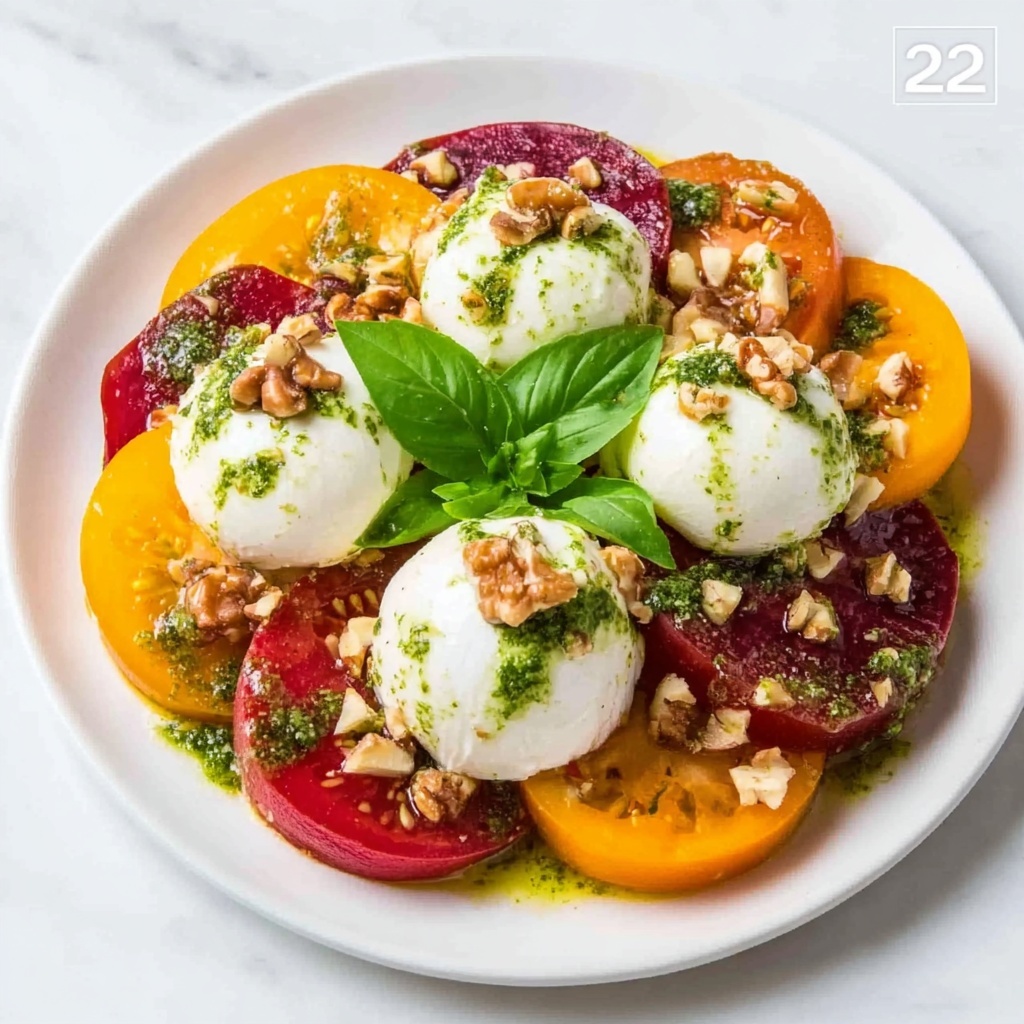 You can substitute burrata with fresh mozzarella if needed. While mozzarella lacks the creamy center of burrata, it still offers a mild, milky flavor that complements the other ingredients well.