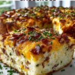 This delicious Eggs Benedict Casserole transforms the classic brunch favorite into a hearty baked dish that’s perfect for feeding a crowd. Featuring fluffy eggs, savory Canadian bacon, toasted English muffins, and melted cheddar cheese, this casserole is seasoned with Dijon mustard and a touch of cayenne for a subtle kick. Easy to prepare and bake, it’s an ideal make-ahead breakfast or brunch option that delivers comforting flavors in every bite.