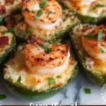 This Fiery Cajun Shrimp Stuffed JalapeƱos recipe is a spicy, savory appetizer perfect for parties or a flavorful snack. Large jalapeƱos are halved and filled with a creamy mixture of cooked shrimp, cream cheese, cheddar, smoky bacon, and zesty Cajun seasoning, then baked to bubbly perfection. Garnished with fresh chives for a pop of color and freshness, these stuffed jalapeƱos combine heat, creaminess, and bold Cajun flavors in every bite.
