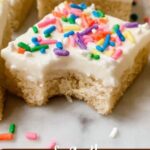 Delicious frosted sugar cookie bars with a tender, buttery base and a creamy vanilla almond buttercream frosting, topped with sprinkles for a festive touch. Perfect for parties, holidays, or any sweet craving, these bars combine the rich flavors of cream cheese and vanilla bean paste in a soft, chewy cookie base.