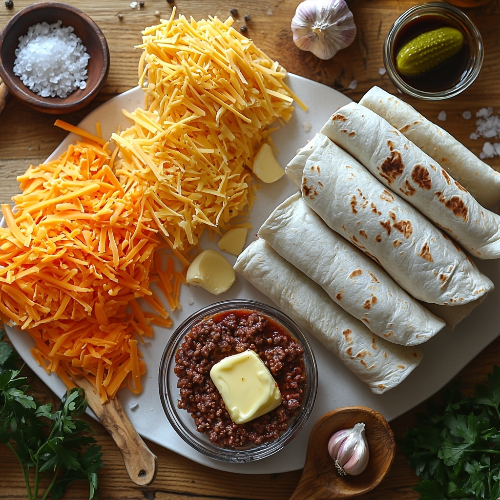 - Assemble the Rollups: Lay the tortillas flat on a clean surface. Evenly distribute the beef mixture over each tortilla, then sprinkle the shredded cheddar and mozzarella cheese on top.