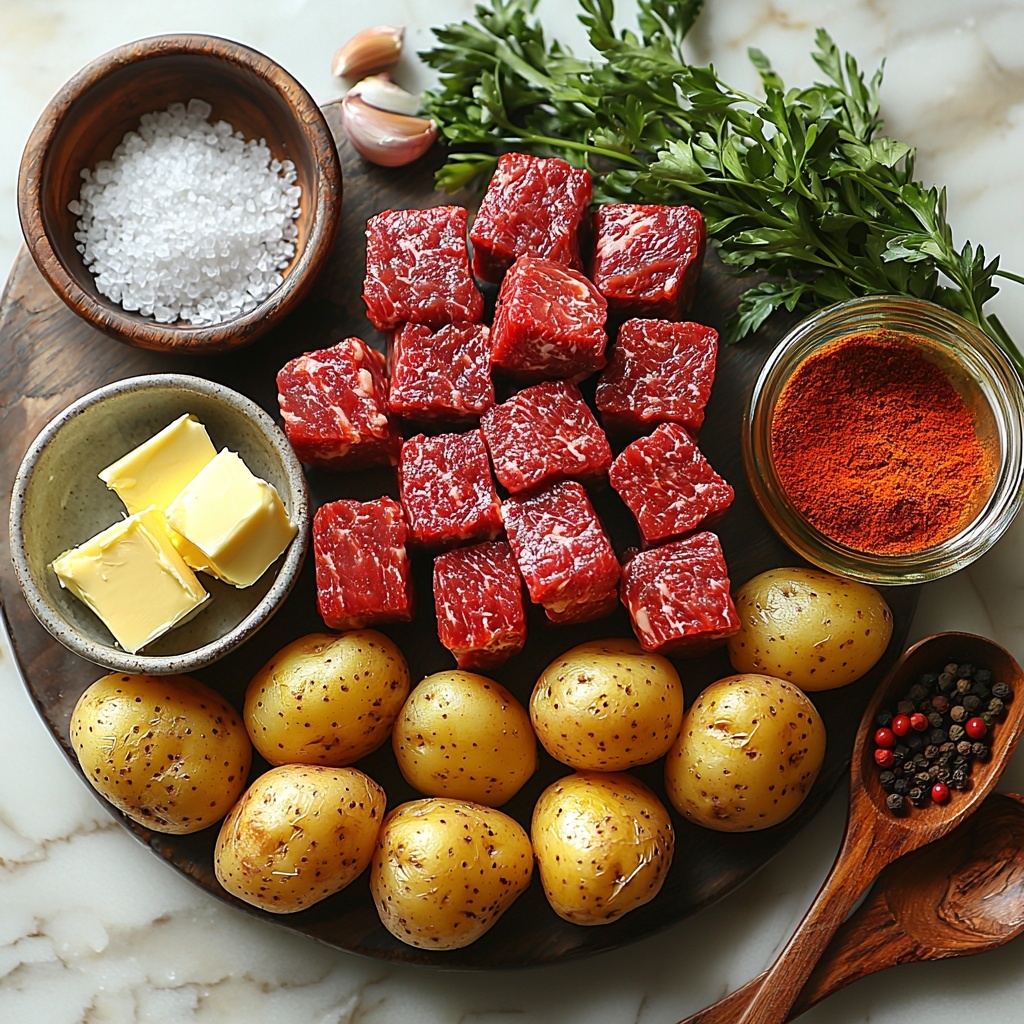 For a fun presentation, serve the steak bites and potatoes on a large wooden board or cast-iron skillet straight from the stove—it adds a rustic, cozy vibe that feels just right. You can also offer small dipping bowls of extra garlic butter or your favorite steak sauce on the side. For an elegant dinner, arrange the bites and potatoes neatly and garnish with microgreens or edible flowers to impress your guests!
