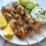 Greek Chicken Souvlaki with Tzatziki Sauce is a flavorful and healthy main course featuring marinated and grilled chicken skewers served with a cool, creamy Greek yogurt cucumber sauce. This dish offers a perfect balance of zesty, herbaceous, and savory flavors, ideal for summer barbecues or a light dinner.