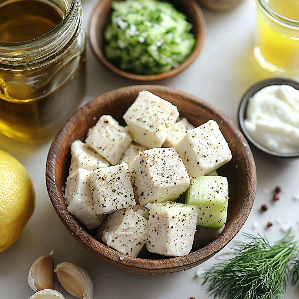 - Prepare Tzatziki Sauce: In a separate bowl, combine the Greek yogurt, grated cucumber, lemon juice, chopped dill, and salt. Stir the mixture well until all ingredients are evenly mixed and the sauce is creamy.