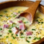Finish off your Ham and Potato Soup Recipe by sprinkling fresh chives on top. This little touch of green brightens the presentation and adds a mild oniony crunch to each bite. Now, your warm, hearty bowl of comfort is ready to enjoy.