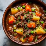 Hearty Leftover Steak Soup is a comforting and nutritious way to transform cooked steak into a delicious dinner. Loaded with vegetables like carrots, celery, potatoes, green beans, and sweet corn, this soup is simmered with beef broth, diced tomatoes, and aromatic herbs to create a flavorful, satisfying meal perfect for any night of the week.