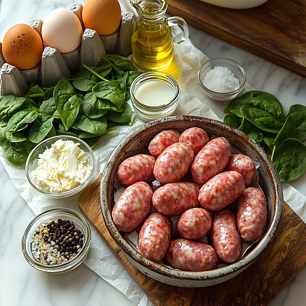 Simple ingredients come together to create a memorable dish. Each one plays a crucial role, enhancing the flavor profile while adding delightful textures and colors to the Hearty Sausage Spinach Mushroom Egg Bake Recipe.