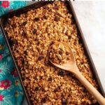 A wholesome homemade granola recipe featuring a blend of honey, warm spices, nuts, and dried fruit, baked to golden perfection. This crunchy granola is perfect for breakfast or a healthy snack.