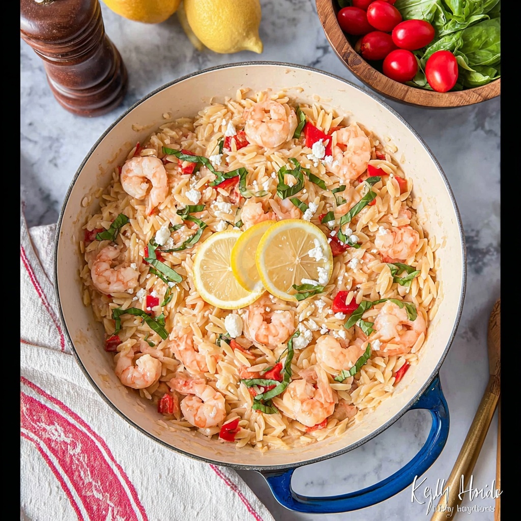 This vibrant recipe for Lemony Orzo with Shrimp and Feta combines perfectly cooked shrimp with tender orzo pasta, fresh tomatoes, and zesty lemon flavors, all finished with creamy feta cheese and fragrant basil. Ready in just 35 minutes, this Mediterranean-inspired dish is ideal for a quick, satisfying weeknight dinner that feels both light and indulgent.