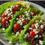 These Mediterranean Ground Beef Lettuce Wraps offer a delicious and healthy dinner option, combining savory seasoned beef with fresh vegetables and tangy feta cheese, all wrapped in crisp lettuce leaves for a light yet satisfying meal. Ready in just 25 minutes, they’re perfect for a quick weeknight dinner packed with Mediterranean flavors.