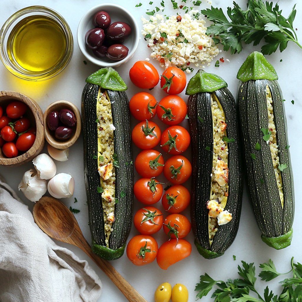 This Mediterranean Stuffed Zucchini Recipe comes together with straightforward and wholesome ingredients, each playing a key role in creating a vibrant and balanced flavor profile. From the fresh zucchini to the hearty quinoa and bold cheeses, every component adds a layer of deliciousness to the dish.