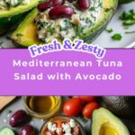 A fresh and vibrant Mediterranean Tuna Salad served in ripe avocado halves, combining savory tuna with cherry tomatoes, cucumber, Kalamata olives, and feta cheese, dressed with olive oil and lemon juice for a light and flavorful meal that’s perfect for a quick lunch or healthy appetizer.