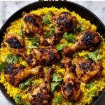 This Moroccan Chicken & Rice recipe is an aromatic and flavorful one-pot meal featuring tender, spiced chicken thighs simmered with fragrant rice, carrots, dried apricots, and spices. The dish combines sweet and savory elements typical of Moroccan cuisine, finished with toasted almonds and fresh herbs for a delicious and satisfying dinner.