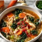 This Nourishing Chicken Quinoa Soup with Vegetables is a hearty and wholesome meal perfect for cozy days. Packed with tender chicken breasts, nutrient-rich quinoa, and vibrant vegetables like carrots, celery, and kale, this soup combines delicious flavors with healthy ingredients. The addition of tomato paste and diced tomatoes adds a rich, tangy depth, while thyme imparts an herby aroma. It’s a fulfilling dish that’s easy to prepare and great for the whole family.