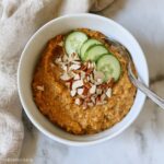 4. Top and Serve: Garnish with your choice of nut butter, sprinkle pumpkin seeds, and add granola if desired for an extra crunch. Serve warm for a comforting breakfast bowl.