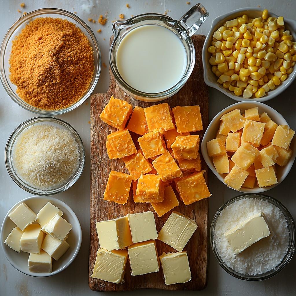 - 14 ounces cream-style corn: Provides smooth creaminess that blends beautifully with the cheeses.