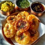 Pani puri pairs beautifully with simple accompaniments like sweet lassi or chilled buttermilk to balance the flavors and keep things refreshing. A light cucumber raita or a mixed vegetable salad can also add a cooling contrast.