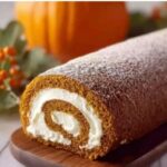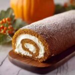 This Pumpkin Roll recipe features a tender, spiced pumpkin cake rolled with a creamy sweet cream cheese filling. Perfect for autumn or holiday desserts, it’s lightly spiced with pumpkin pie spice and wrapped in a kitchen towel to maintain its moist texture.
