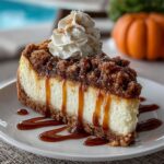 When it comes to garnishing your Pumpkin Streusel Cheesecake Recipe, simplicity is best. A light dusting of powdered sugar adds a delicate sweetness and an elegant look. For a touch of texture and color, chopped toasted pecans or walnuts scatter beautifully on top. Fresh whipped cream with a hint of cinnamon can crown each slice, adding a silky contrast that perfectly complements the warm pumpkin spices.