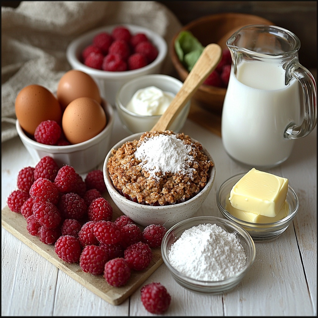 Getting started with this recipe is incredibly straightforward because each ingredient plays a crucial role — from the flours that give structure, to the fresh raspberries providing vibrant color and flavor, and the buttery streusel that adds that perfect crunch.