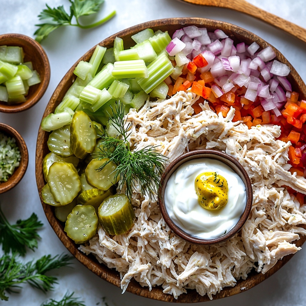 Each ingredient in this recipe is simple yet essential, working together to bring a perfect blend of taste, texture, and color that makes this chicken salad so delightful. From the crisp celery to the fresh dill, every component plays a starring role.