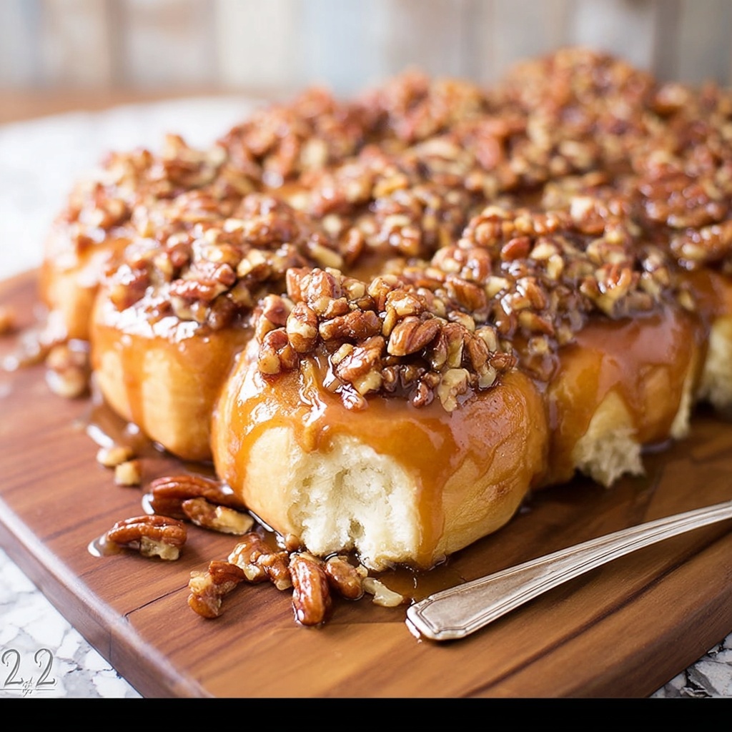 • Coarsely chopped pecans: Adds crunch and a nutty contrast against the soft rolls and sweet caramel.