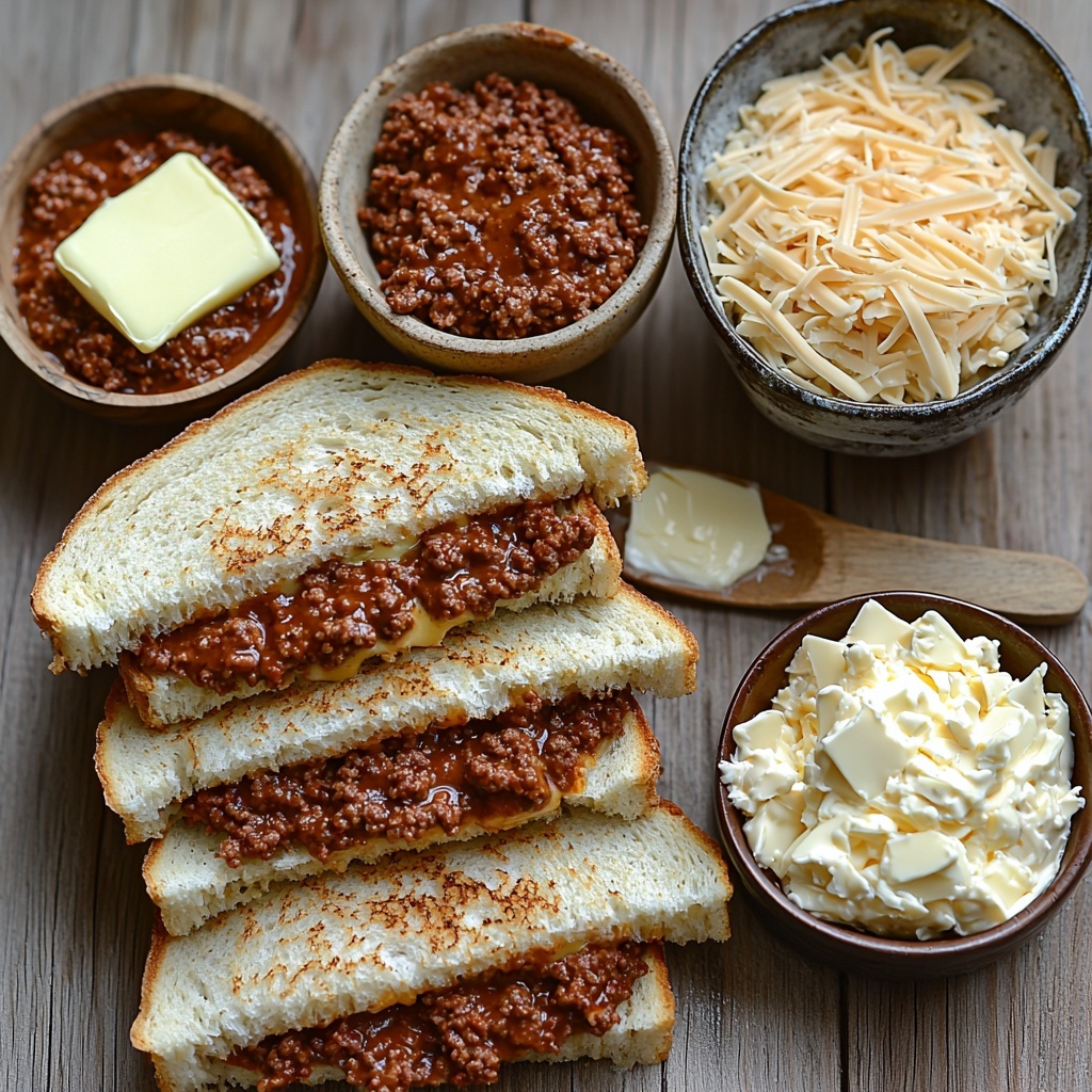 Getting great flavor in this Sloppy Joe Grilled Cheese Sandwiches Recipe starts with straightforward ingredients that each play a vital role. From the buttery bread that crisps beautifully to the tangy, savory sloppy joe mix and the ooey-gooey cheese, every component builds layers of deliciousness you won’t want to miss.