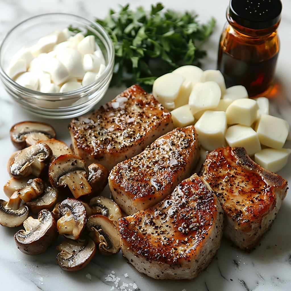 A hearty and flavorful recipe for smothered pork chops cooked in a rich mushroom gravy. The pork chops are seared for a golden crust then simmered with sautéed mushrooms, onions, and a creamy gravy made from chicken broth and heavy cream. This comforting American classic is perfect served over mashed potatoes, rice, or egg noodles.